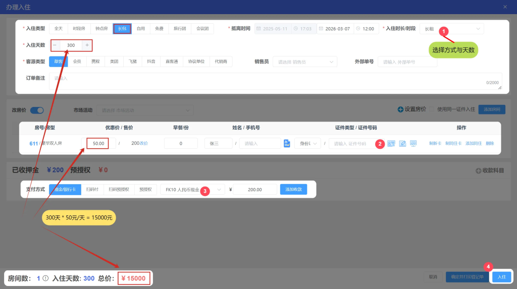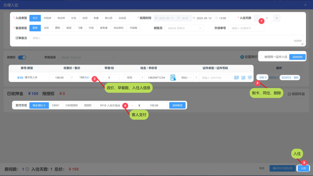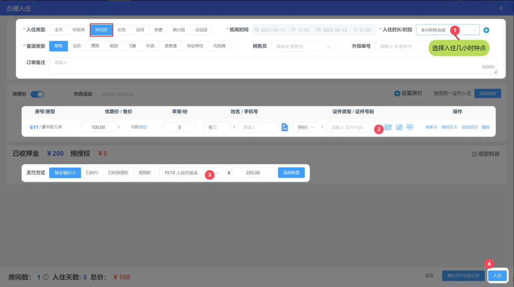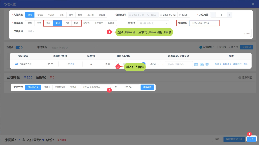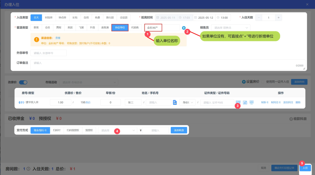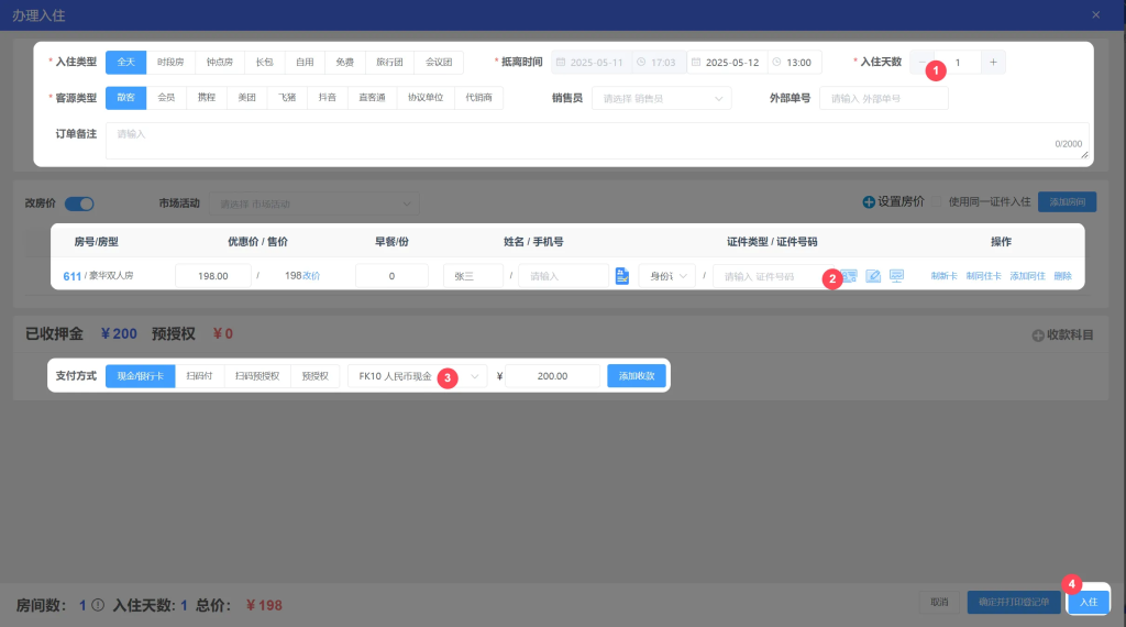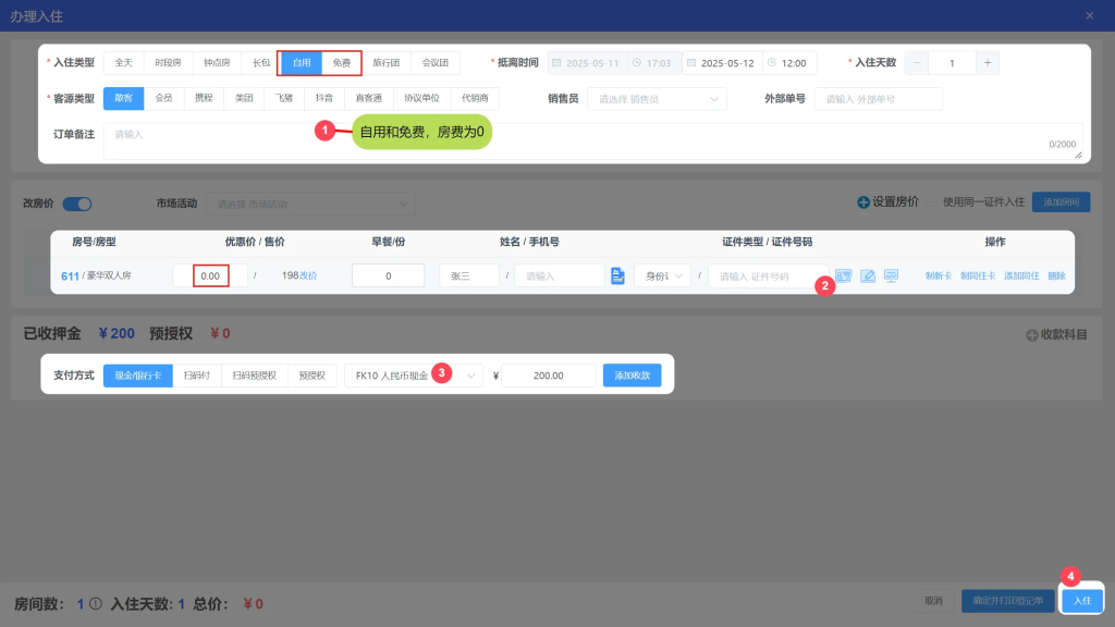 1.散客入住