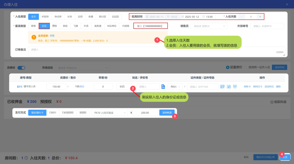 2.2.非会员本人入住